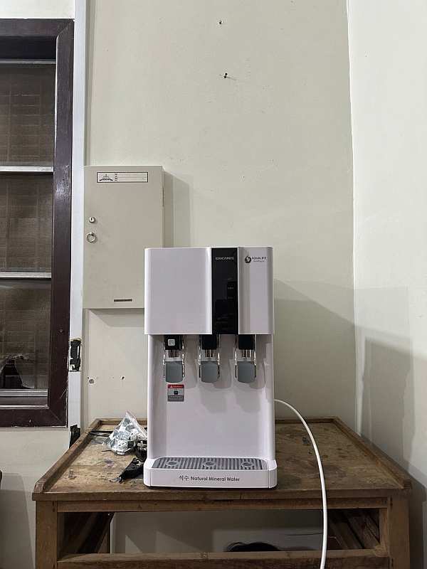 Around 20 of Aqualife’s staff members came to our campus to install four advanced water purifiers. One machine (a table-top LUNOX model) was set up in the office for use by staff and visitors, while three more (JIGSU models) were placed in the kitchen and the dining area. The purifiers were donated by Aqualife and installed at no cost to Little Hearts. Aqualife will also carry out regular maintenance of the machines and replacement of the filters (IONCARES systems use a five-step purification method, so there are several filter cartridges in each one).