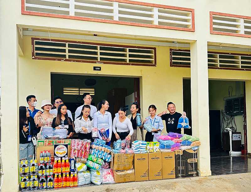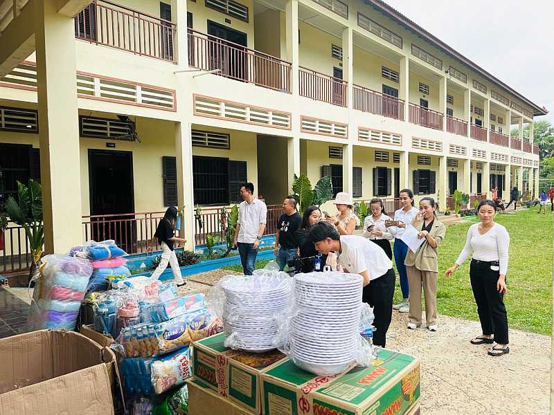 Not content with having taken care of our drinking needs, Aqualife staff also made a financial donation and brought many gifts, including boxes of noodles, kitchen ingredients (soy sauce, fish sauce, sugar, garlic, etc.), and reusable water bottles of various sizes so that the kids can carry purified water to their rooms, to school and on their outings.