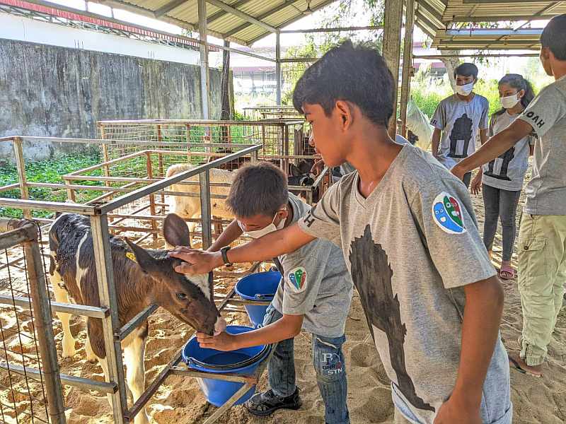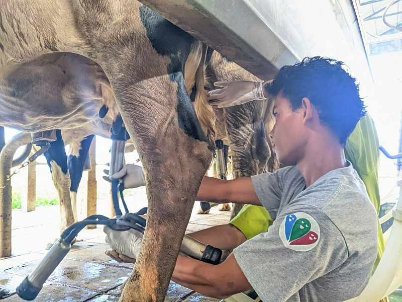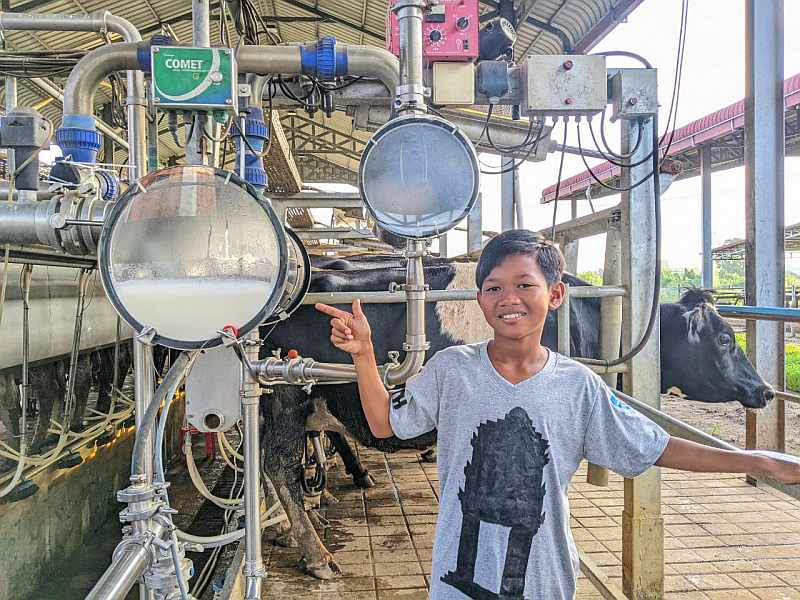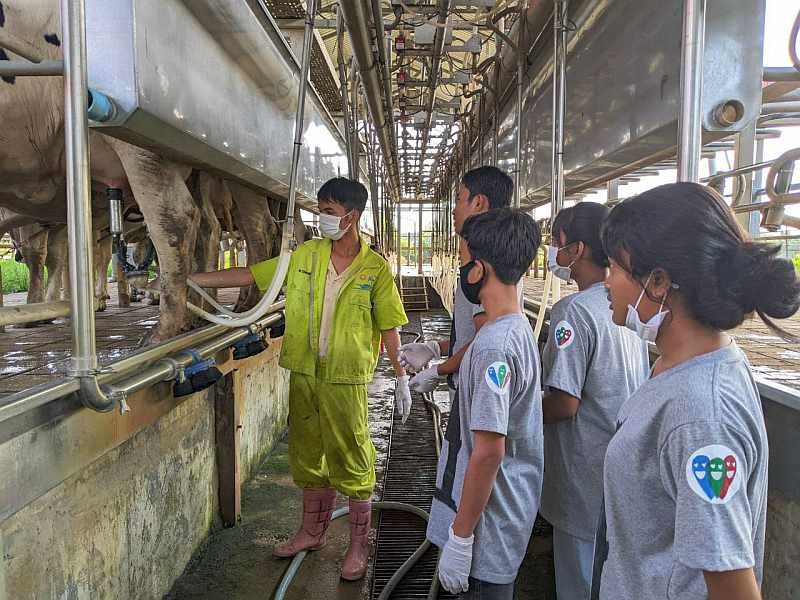 One of the places featured in the race was Moo Moo Farms, a business located close to the Arey Ksat ferry. As the name suggests, it’s Cambodia’s first homegrown dairy farm. It produces fresh, bottled cow’s milk as well as other dairy products like yoghurt and ice cream using cows (a mix of Holstein and Brahman breeds) that are specially bred to cope with Cambodia’s hot, humid climate while still yielding plenty of nutritious, high-quality milk. While scouting the location to prepare for the race, Roxanne had a productive conversation with the management of Moo Moo Farms, and a follow-up field trip was promptly agreed.