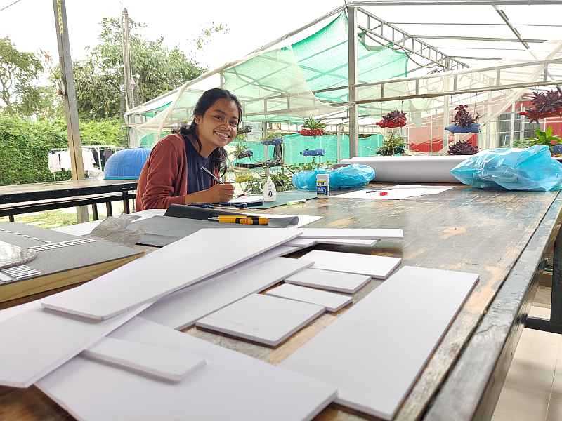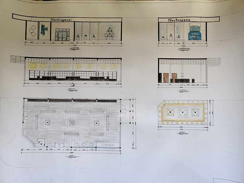 Remember Ilay? She’s one of the oldest residents at Little Hearts and now studies interior design at the Royal University of Fine Arts in Phnom Penh. She recently received her first big assignment – to design a retail outlet for her favourite personal care or cosmetics brand. She chose Neutrogena, a well-known company specialising in skincare, and set about capturing the brand’s values and characteristics – cleanliness, health, wholesomeness – in spatial form.