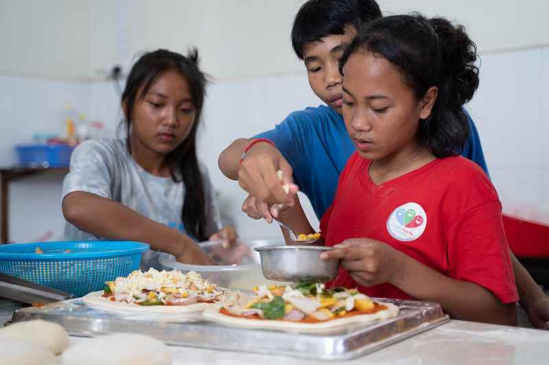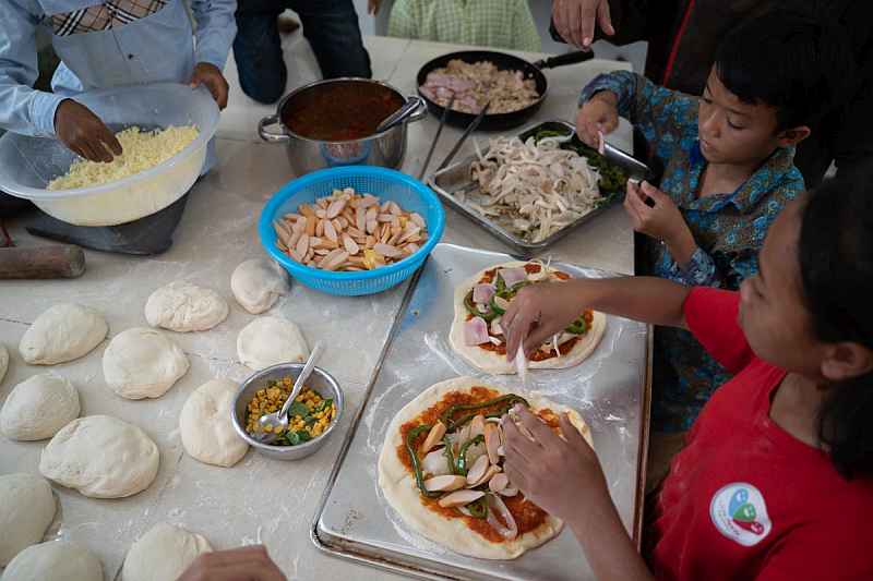 Those pesky Neapolitans will tell you that pizza is an Italian invention. But here at Little Hearts, we think of it as a Belgian speciality. Why? Because the Belgian Embassy recently made a vital contribution to our kitchen – a shiny new oven. This wondrous double-deck appliance replaces our very old, single-deck machine and will enable us to bake home-made bread, casseroles, roasts and much more… and especially pizza! Enough pizza to feed three dozen hungry kids and their caretakers.