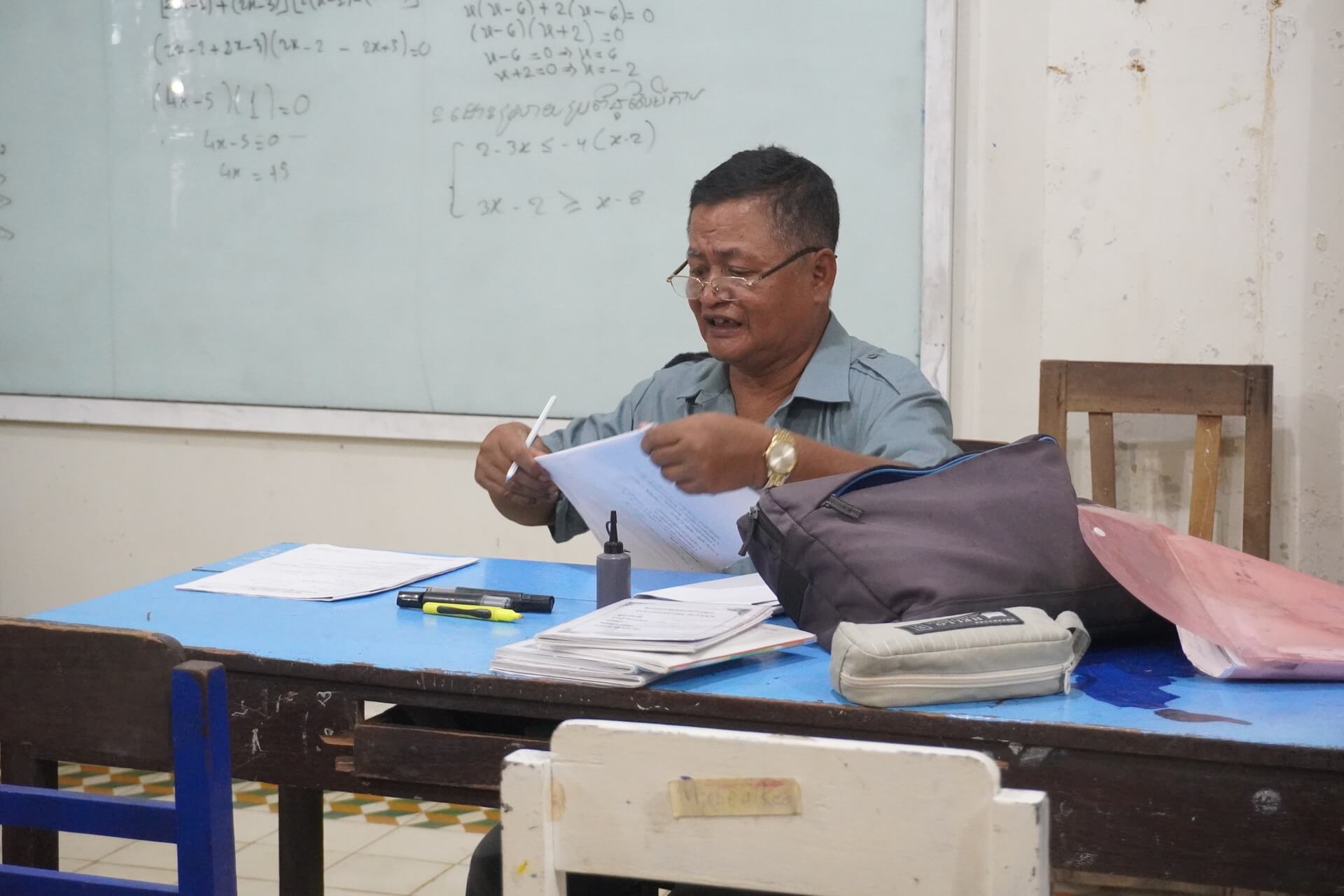 Our other tutor, Long Chhengleng, also has a lot of teaching experience – 23 years. Throughout his career, he has taught various subjects in different schools and grade levels. Currently, he teaches high school maths and chemistry at the same school as Teacher Gii.