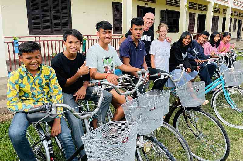 But it wasn’t Santa Claus who gifted these shiny new bikes; it was Derrick Murray and his wife Brenda, the founders of Bikes4Kids Cambodia, a charity that endeavours to equip underprivileged children with bicycles so that they may travel reliably to school while staying healthy.