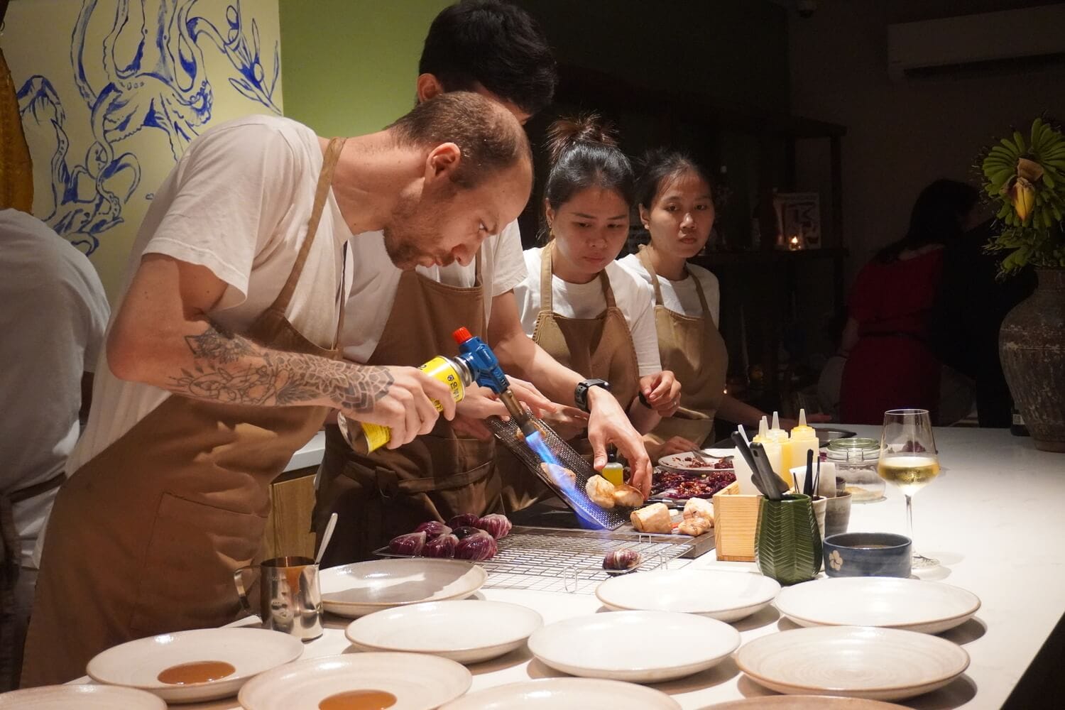 The much-awaited fundraising dinner by Chef Mario Yufera Blanes, masterminded by our industrious star supporter, Yennie Liang, took place last week. Twenty-two lucky guests gathered at Casa Blanes, Chef Mario’s upscale restaurant in central Phnom Penh, and were treated to a gourmet feast titled ‘Flavours of Hope’, which consisted of eight unique, delectable courses.
