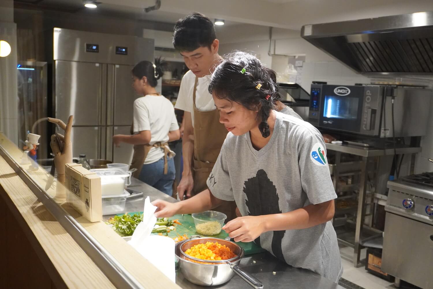 Several of our kids participated in the event, especially those who had previously taken cooking classes with Chef Mario. Malee, Olivia, Dalin and Micky assisted the chef in the kitchen, while Elizabeth and Daleine helped with table service. Michael and Ilay also attended the fundraiser; they brought ten paintings created by Little Hearts students during their art classes and offered them for sale to the dinner guests. And all ten paintings were sold that very evening!