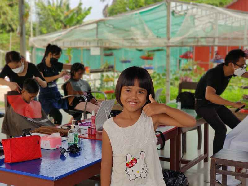 Since last August, Little Hearts has been fortunate to enjoy the hairdressing services of Syna Leang, a professional hairstylist, makeup artist and salon owner in Phnom Penh, free of charge. Syna’s career in hairdressing began when she was a little girl. Born in the Khao-I-Dang refugee camp in Thailand, 20 kilometres north of the Cambodian border, where her parents had fled from the Khmer Rouge, Syna discovered a passion for hairstyling at a very young age. At first, she was obsessed with combing and styling her doll’s hair, then she graduated to cutting the hair of her three sisters, who courageously volunteered to let her test out new styles and techniques on them.